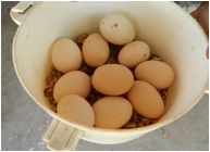 eggs Calcium supplements should be added to the feeds for egg laying birds. Shells are mixed with feed it will supply calcium. Country birds begin laying eggs first 24th week onwards. It lays upto 72 weeks (18 months). Country birds lays 80 - 100 eggs in a year. Eighteen months old  birds are removed from the farm and new growth birds to be stocked. In the corner of the shed keep straw in the pot to facilitate residing of hatching birds. It helps to relax hatching birds.