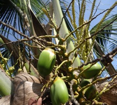 - Grow intercrop (sun hemp, four crops/year) and shelter belt with casuarina all round the coconut garden to check further entry.