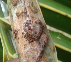 - The coconut trees of all ages are attacked.