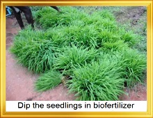 - The root portion of the seedlings required for an acre is dipped in the mixture for 5 to 10 minutes and then transplanted.