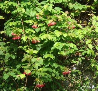 The other common flowering hedges are Beloperone amhersita with its perpetual rust-colored bracts overlapping small white flower, Buddleia aisatica with gray green foliage and conical fragrant clusters of off-white flowers; Hamelia patens with red-veined leaves like Fuchsia and attractive orange-colored flowers in the rainy season; Hibiscus with its trumpet like bright flowers of orange, pink, white, red, purple, etc. with dark green bright foliage; Jatropha with its star-like rose-crimson flowers; Lantana with its compact dark-green foliage and round cluster of flowers; Lonicera japonica (honeysuckle) with beautiful fragrant white flowers and small dark-green leaves; Plumbago with pearl blue flowers; Pomegranate with tiny leaves and bright scarlet flowers; Tabernaemontana coronaria with star-like pure-white flowers, decorating dark-green shining leaves; and Tecoma stans with bright yellow trumpet-like flowers.