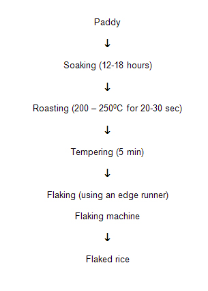 is another important value added product prepared from paddy. Traditionally, it is prepared from soaked paddy, after heat treatment and immediate flattening using a flaking machine (an edge runner). |