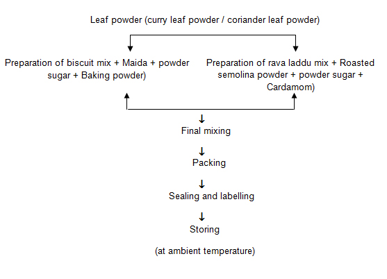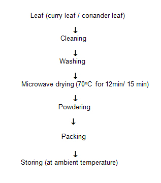 FLOW CHART FOR PREPARATION OF CURRY LEAF POWDER CORIANDER LEAF POWDER BASED MIXES