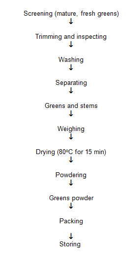 FLOW CHART FOR THE PREPARATION OF DEHYDRATED GREENS POWDER