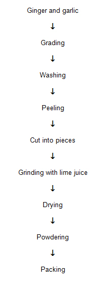 PREPARATION OF CHICKEN MIX * Ingredients: Red chillies – 1 kg, coriander seeds – 500 g, pepper – 100 g, salt – 200 g, cumin – 100 g, dried and powdered ginger – 10 g, cloves – 5.0 g, cinnamon – 10.0 g, cardamom – 5.0 g, turmeric powder – 10 g, dried and powdered garlic – 30 g, dried and powdered onion – 100 g, refined groundnut oil – 50 ml for frying the ingredients. Method: Fry the red chillies in oil till it becomes light brown in colour. Fry the other ingredients viz., coriander seeds, pepper, cumin, cloves, cinnamon and cardamom separately. All the ingredients are mixed and made into powder in a machine (Huller). The powder is cooled and packed in polythene bags or an air tight glass bottles / plastic containers. PREPARATION OF MUTTON MIX* Ingredients: Red chillies – 1 kg, coriander seeds – 750 g, pepper – 50 gm, salt – 200 g, cumin – 100 g, dried and powdered ginger – 10 g, cloves – 5.0 gm, cinnamon – 5.0 g, cardamom – 5.0 g, turmeric powder – 10 g, dried and powdered garlic – 20 g, dried and powdered onion –200 g. Refined groundnut oil – 50 ml for frying the ingredients. Method: Fry the red chillies in oil till it becomes light brown in colour. Fry the other ingredients viz., coriander seeds, pepper, cumin, cloves, cinnamon and cardamom separately. All the ingredients are mixed and made into powder in a machine (Huller). The powder is cooled and packed in polythene bags or an air tight glass bottles / plastic containers. PREPARATION OF FISH GRAVY MIX ** Ingredients: Red chillies – 1 kg, coriander seeds –300 g, salt – 150 g, cumin – 100 g, dried and powdered ginger – 20 g, dried and powdered garlic – 20 g. Method: Dry all the ingredients in sun for 5 hrs (or) cabinet drier at 80oC for 2 hrs. Mix all the ingredients and made into powder by using machine (Huller). Cool the powder and packed in polythene bags / air tight glass or plastic containers. PREPARATION OF VEGETABLE MASALA MIX** Ingredients: Red gram – 50 g, coriander seeds – 125 g, cumin – 8 g, cinnamon – 3 gm, cloves – 1 g, pepper – 7.5 g, poppy seed – 200 g, ani seeds – 2.0 g, turmeric – 5 g, red chillies – 2 g, asafoetida – 2 g, salt for taste. Method: Fry all the above mentioned ingredients separately grind into a powder consistency using mixie (or) machine. Sieve the powder and pack it. OTHER MASALA POWDER