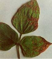 • இந்நோயினால் பாதிக்கப்பட்ட  செடியின் இலைப்பழுப்பு நிறமாகவும், காய்ந்தும், சிறிது உயர்ந்த புள்ளிகளாகவும் காணப்படுகிறது.