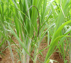 • கணுவிடைப்பகுதி நீண்டு ஆரம்பத்தில் தடிமன் குறைய ஆரம்பிக்கும்.  பின்பு கரும்பின் நீளமும் குன்றிவிடும்.