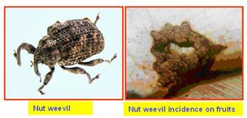 தண்டு துளைப்பான் : வண்டுக்ள மரத்தின் மேல் பட்டைகளில் முட்டையிட்டு, முட்டைகள் புழுவாக மாறி, பட்டையின் உட்பாகத்தை துளைத்துத் தின்னும், இதனால் கிளைகளும், சில நேரம் முழுமரமும் வாடி பின்பு காய்ந்து விடும்.