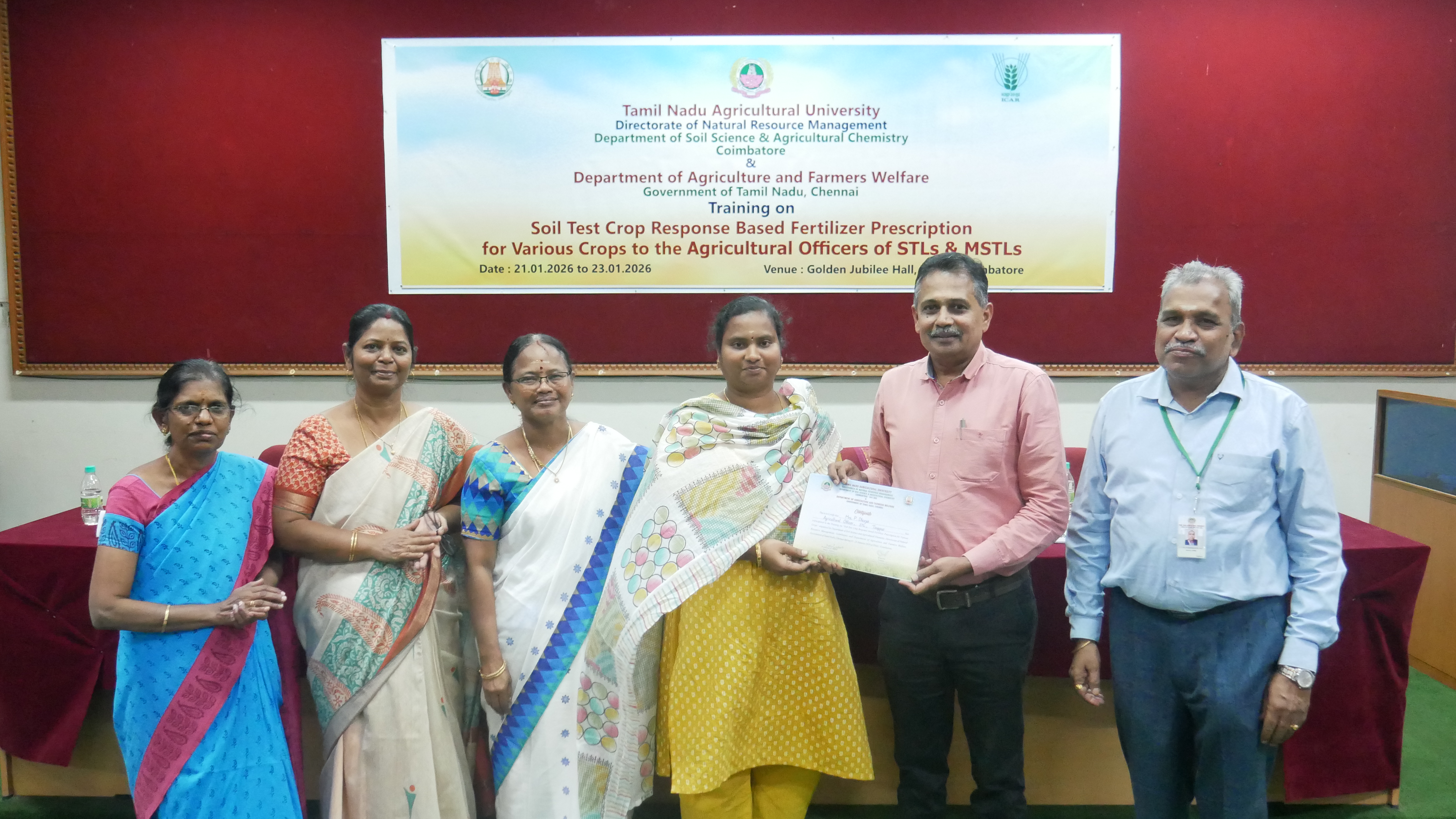 Dt 24.01.2026 டிஎன்ஏயு (TNAU) சார்பில் "பல்வேறு பயிர்களுக்கான STCR அடிப்படையிலான உரப் பரிந்துரை" குறித்த பயிற்சித் திட்டம் நடத்தப்பட்டது. / image 1 / image 2 / image 3