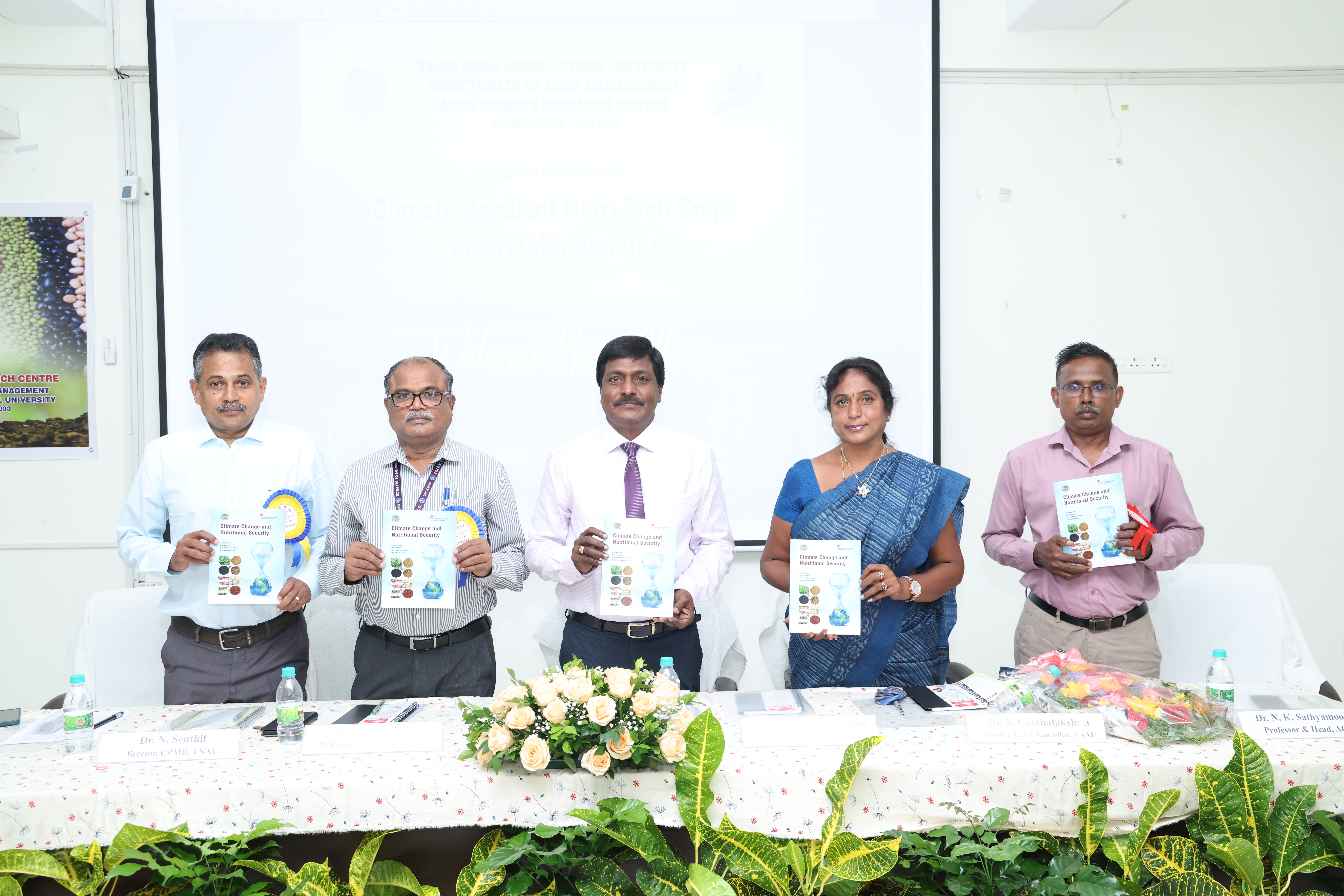 Dt 05.11.2025 காலநிலைக்கு ஏற்ற ஊட்டச்சத்து நிறைந்த பயிர் மற்றும் சுகாதார நன்மைகள் குறித்த தேசிய பயிலரங்கை TNAU ஏற்பாடு செய்தது. / image 1 / image 2 / image 3