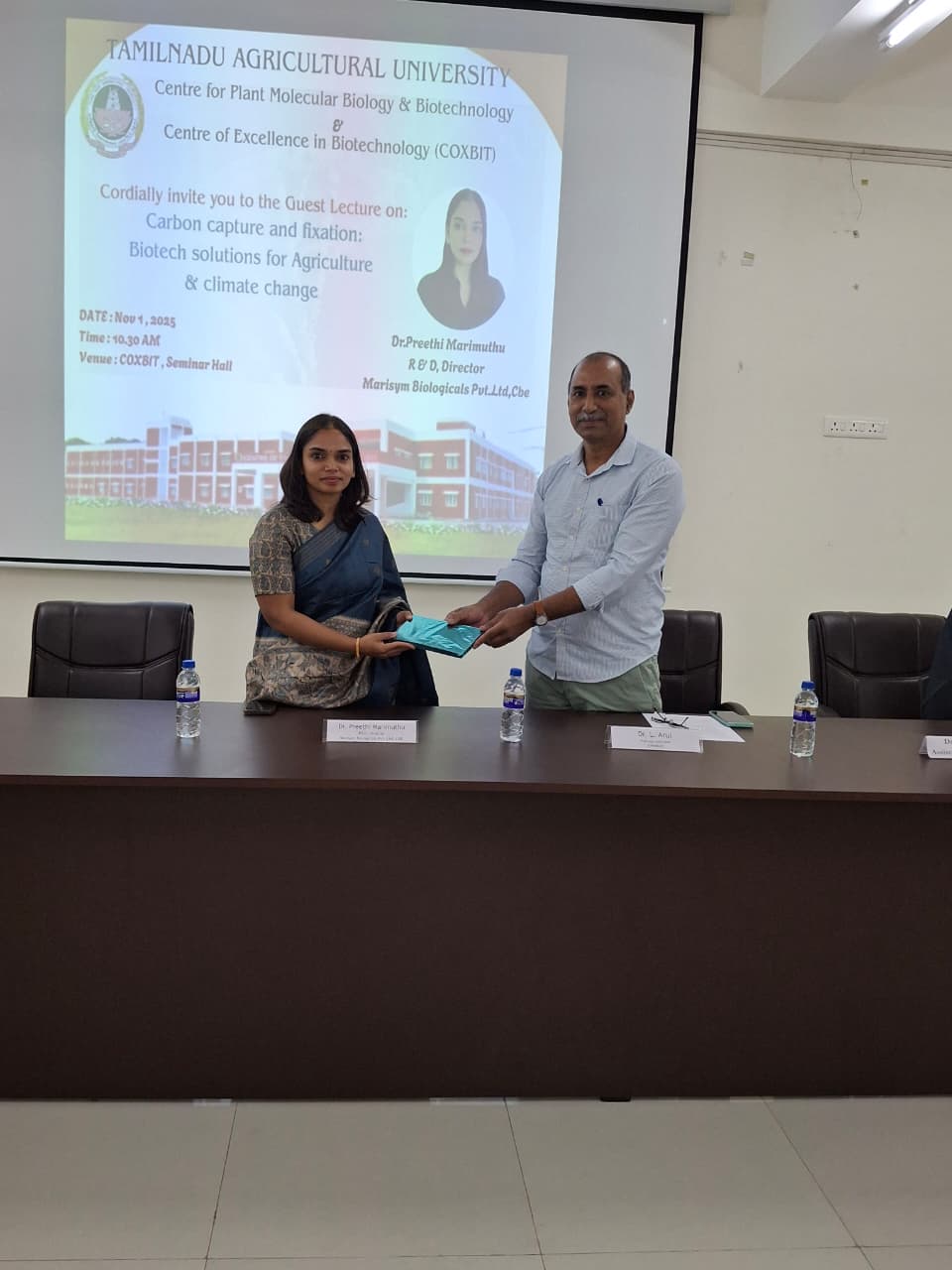 Dt 03.11.2025 கார்பன் பிடிப்பு மற்றும் நிலைப்படுத்தல் குறித்த TNAU விருந்தினர் சொற்பொழிவு. / image 1 / image 2
